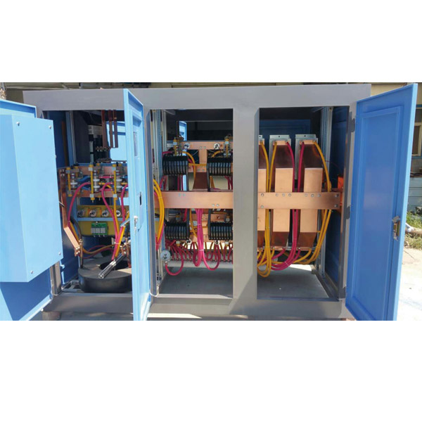 4、可以實(shí)現(xiàn)"一拖二":可同時向兩臺電爐供電,實(shí)現(xiàn)"一拖二"(或者一拖N),總功率可在兩臺爐體上無級分配。每臺爐體上功率都可在0~100%之間分配,但兩臺電爐分得的功率之和不超過100%。實(shí)踐中一臺爐體熔化,另一臺爐體保溫澆注,且二臺爐體均可相互置換使用,實(shí)現(xiàn)更大鑄件或連續(xù)不間斷澆鑄。